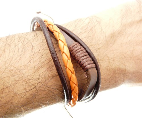 Bracciale in pelle e cavo / cinturino in pelle / braccialetto di surf -01