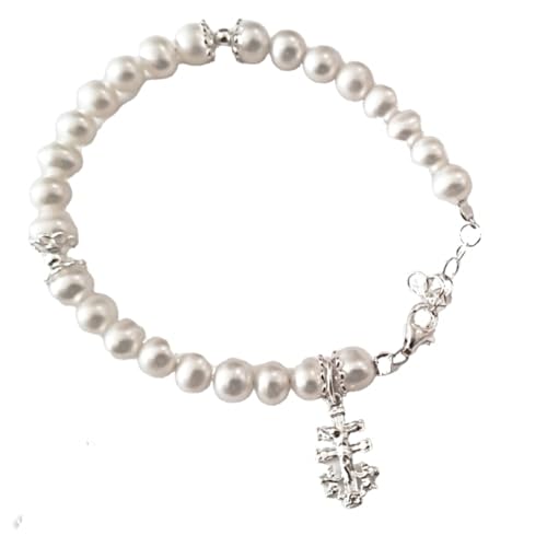 Bracciale con perle coltivate e croce di Caravaca in argento Sterling, lunghezza da 16,5 a 19 cm