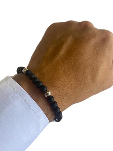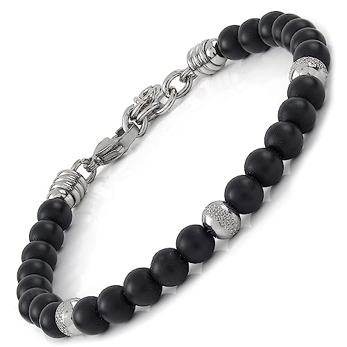 10:10 Bracciale con pietre naturali black stone da 6 mm, beads in acciaio inox, bracciale molto resistente prodotto in Italia