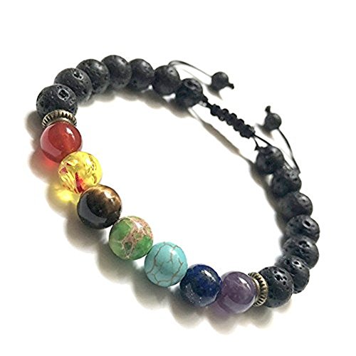 MSQ Bracciale Reiki di lava - Bracciale Energia terapia Yoga Bracciale 7 Chakra Healing 8 mm Lava Beads Buddha per geflochte Bracciale