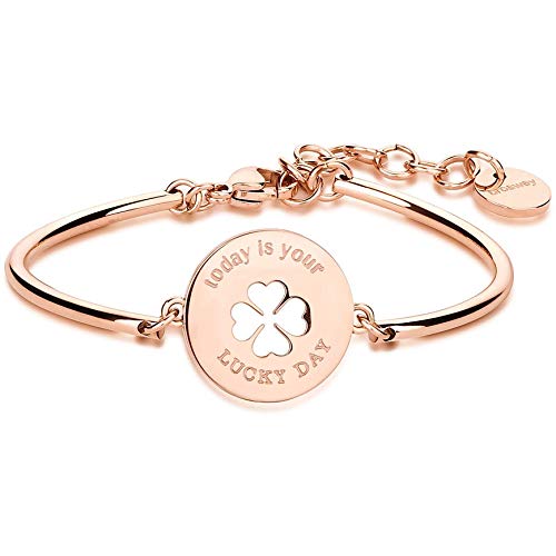 Bracciale rigido donna in acciaio gold con centrale QUADRIFOGLIO BROSWAY BHK49