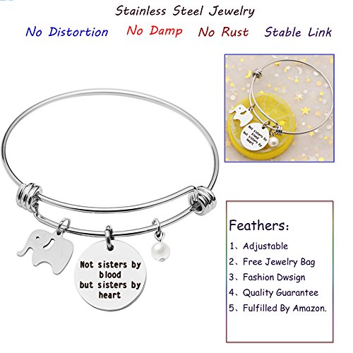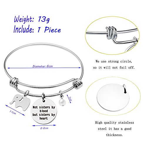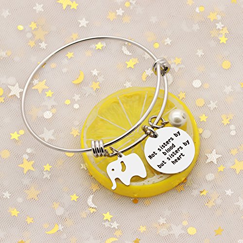 Bracciale rigido per migliore amica/sorella, perfetto come regalo di laurea, ciondolo a forma di elefante e ciondolo con scritta "Not Sisters By Blood But Sisters By Heart"