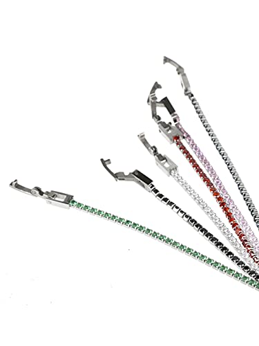 Bracciale Tennis in Acciaio Inox 2 mm con Zirconi taglio Brillante, Lunghezza regolabile, disponibile in più colori - Uomo e Donna Unisex (Blu)