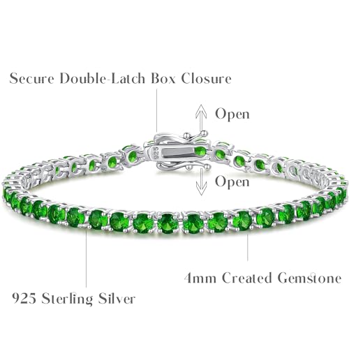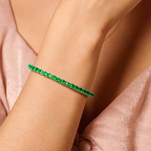 Bracciale Tennis in Argento Sterling 925 Massiccio con Zirconi Smeraldo Matrimonio Romantico Nuziale Gioielli Regalo per Donne Ragazze Uomo - Larghezza 4 mm, lunghezza 19,5 cm