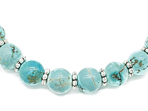 Bracciale Turchese Donna con Separatori, Elastico 19 cm, Fatto a Mano, Pietre Dure Naturali