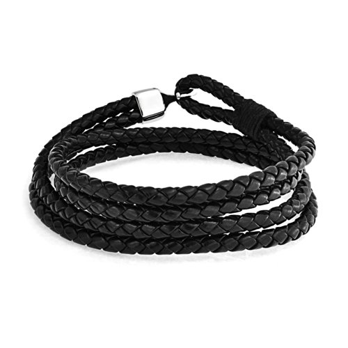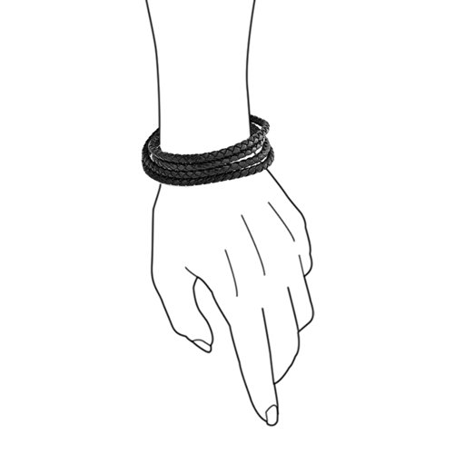 Completate il vostro ensemble con questo bracciale avvolgente dal design accattivante. Caratterizzato da un design a doppio intreccio realizzato in vera pelle nera per un fascino robusto, con chiusura in acciaio inossidabile lucido. Può essere indossato anche come collana da 17.