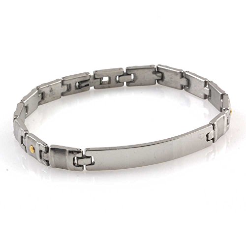 Bracciale uomo acciaio e oro 18 kt con piastra per incisioni