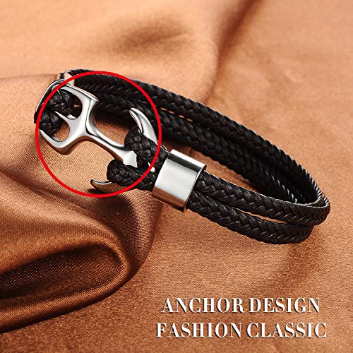 Bracciale da uomo fatto a mano, a forma di ancora, lunghezza 22,5 cm, in pelle sintetica di alta qualità con ancora in acciaio inox per uomo e Acciaio inossidabile