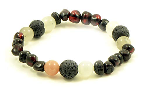 Bracciale in vera ambra baltica pietra di luna lava e agata per adulti, unisex, perle in ambra baltica naturale fatte a mano, 18 - 20 cm e ambra., cod. L16-3M