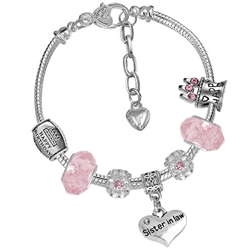 Include: 2 perline di vetro sfaccettato trasparente, 2 ciondoli scintillanti a forma di fiore, 2 ciondoli scintillanti per compleanno, 1 ciondolo a forma di cuore con strass scintillanti, 1 braccialetto placcato in argento da 16 cm, 1 confezione regalo