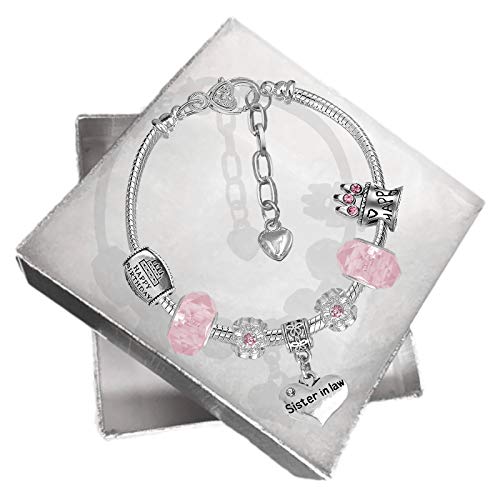 Bellissimo braccialetto con cristalli rosa e biglietto di auguri di compleanno per sorella in giurisprudenza