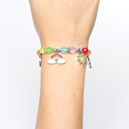 Braccialetti con ciondoli a tema Arcobaleno che i bambini possono creare e indossare.