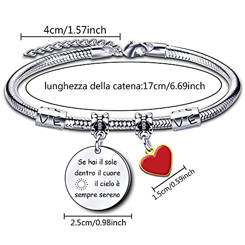 Braccialetti Donna Bracciale Acciaio Ciondolo con Incisone"Se hai il sole dentro il cuore, il cielo è sempre sereno" Regolabile Regali di Ispirazione