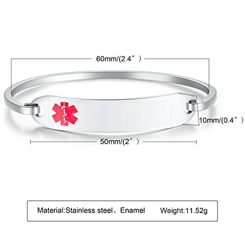 Braccialetti Identificativi di Allerta Medica Personalizzati:VNOX Elegent Braccialetto di Emergenza per Donne Impermeabile Braccialetto Braccialetto da Donna Incisione Gratuita,Rosa Rossa