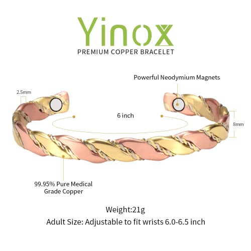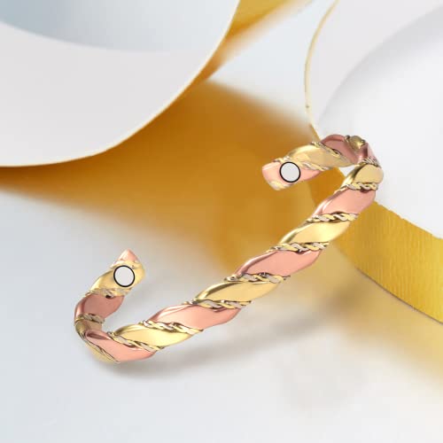 Braccialetti magnetici in rame oro e oro rosa bicolore per donna, adatti per artrite, sollievo dal dolore articolare, 6,5 mm, regalo per la salute per le donne