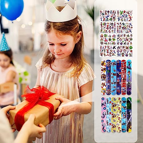【Spider-Man Regali Set】: Compreso 12 Braccialetti per Bambini e 8 adesivi impermeabili, Set di bracciali per bambini sono i migliori regali di compleanno per ragazzi e ragazze.