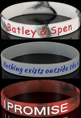 I nostri braccialetti personalizzati sono 100% silicone. Colore inciso riempito (testo inciso + colore riempito). Testo con leggero riflesso, non solo stampato. Può proteggere l'inchiostro dall'usura quotidiana, come la doccia, il nuoto o l'attrito da pelle e vestiti.