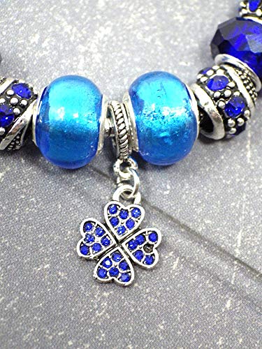 Braccialetto in acciaio inossidabile Charms Modello Thurcolas Manhattan con ciondolo a forma di trifoglio con cristalli blu