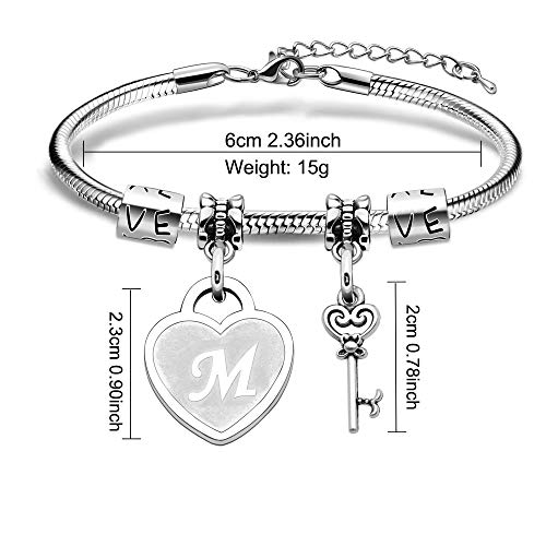 Braccialetto con iniziale: ciondolo a forma di cuore con 26 lettere dalla A alla Z e scettro da regina.