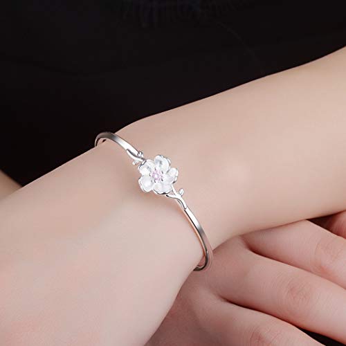 Braccialetto in argento Sterling 925 con fiori di ciliegio, per donne e ragazze, con ciondolo a forma di fiore di Sakura, regalo estivo, Metallo