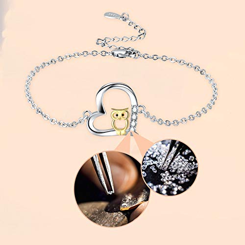 Braccialetto in argento Sterling 925 con gufo tagliato a forma di gufo, regolabile, regalo per donne, ragazze, fidanzate, amanti, mamma, festa della mamma, con confezione regalo (gufo 2), 11 inch,