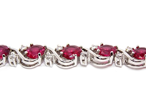 Braccialetto in argento 925 con topazi bianchi e rubini, 16 kt
