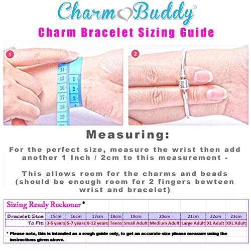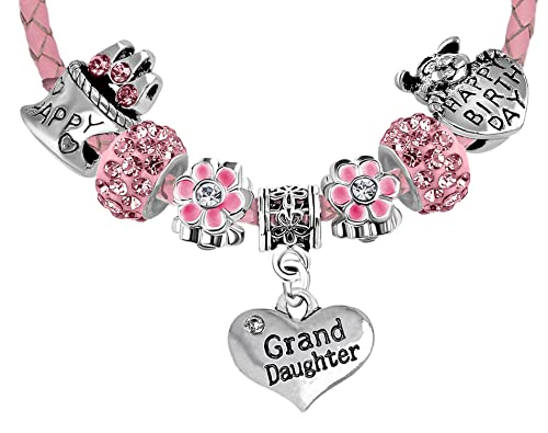 Include: 1 braccialetto da ragazza in vera pelle rosa da 18 cm con chiusura a scatto placcata in argento Sterling, 2 perline di cristallo rosa scintillante, 1 ciondolo a forma di orsacchiotto placcato in argento, 1 ciondolo a forma di torta di compleanno placcato in argento con strass scintillanti, 2 ciondoli a forma di fiore con strass scintillanti, 1 ciondolo a forma di cuore placcato in argento con strass trasparenti, 1 confezione regalo