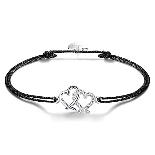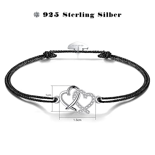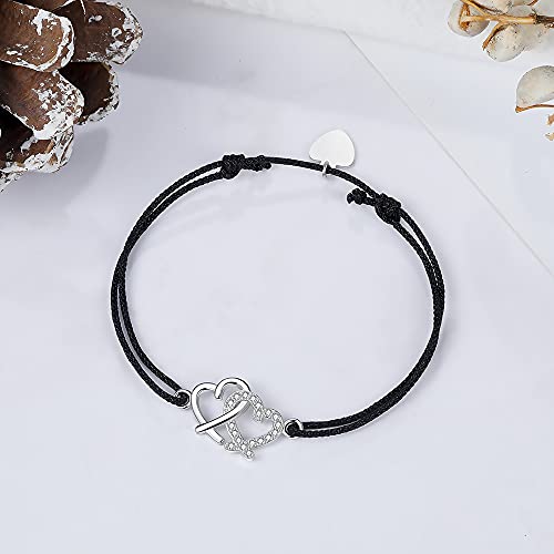 Braccialetto del cuore di amore per le donne regolabile 925 braccialetti dell'argento sterlina Fatto a mano ha intrecciato il braccialetto di amicizia della corda per le donne della ragazza