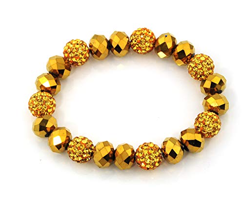 Braccialetto elasticizzato, con perline in cristallo Shamballa, Aurora Boreale (AB), vetro sfaccettato Gold