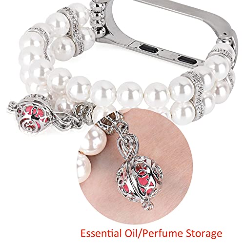 Braccialetto fatto a mano per MI Band 3 4 Strap MI Bands 5/6 Cinturini da polso Bands Bands Elastico Black Black Pearl Dressy Woman DFKE (Band Color: White, Size: Miband 3 4)