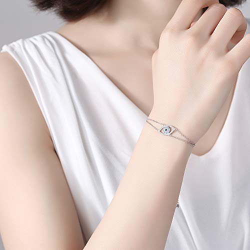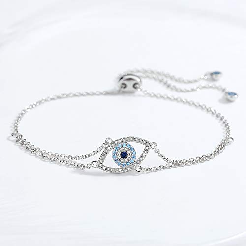 Braccialetto Nazar a due strati con amuleto in argento Sterling 925 e zirconia cubica, regolabile, 25,4 cm, da donna, 10 inches, Pietra, Zirconia cubica