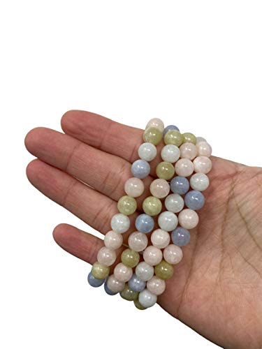 Braccialetto con perline di morganite da 8 mm, con perle di muganite, gioiello in pietra preziosa naturale, gioiello in morganite, gioiello da regalo per uomini e donne