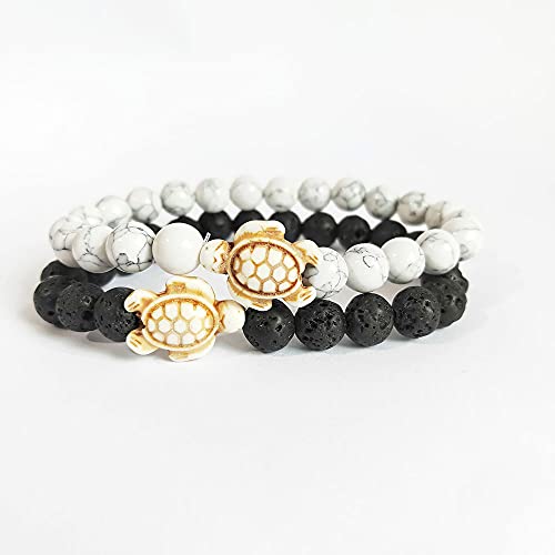 Braccialetto Di Pietra Per Le Donne,Donne Gemma Braccialetto Bianco Naturale Howlite Pietra Perline Braccialetto Elastico Tartaruga Bianca Braccialetto Chakra Gioielli Boho Yoga Regalo Per Fidanzata