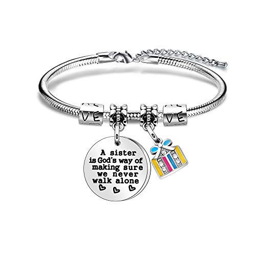 Braccialetto rigido per sorella, compleanno di fratello, sorella, sorella, anniversario di laurea, anniversario di laurea con scritta "A Sister is A God's Way of Making Sure We Never Walk Alone"