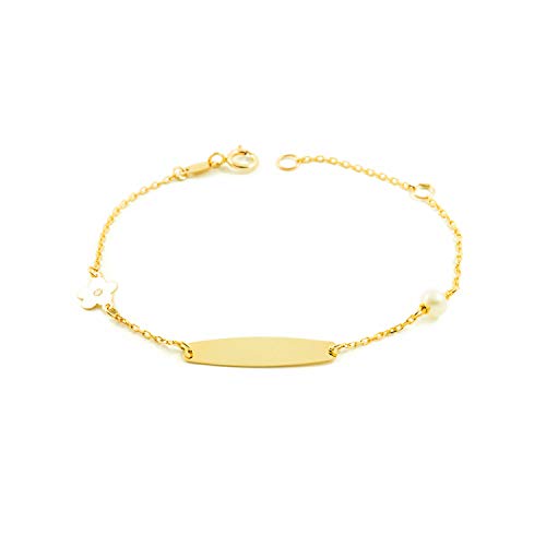Braccialetto con schiava in oro da bambina, con fiore e perla, 4 mm (9 kts) - Scatola Regalo - Certificato di garanzia