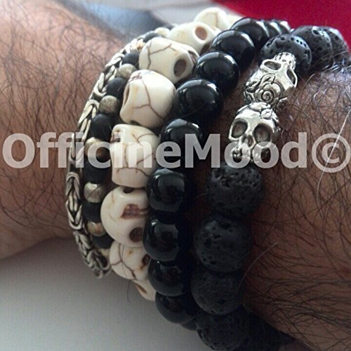 Braccialetto teschio argento & lava stone
