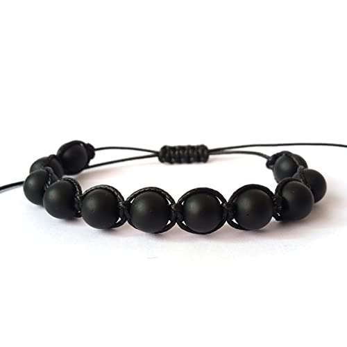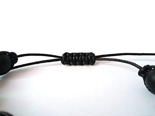 Braccialetto Uomo in Onice Nera Opaca, Shamballa il Bracciale Della Felicità, Regolabile Fatto a Mano, Pietre Dure Naturali