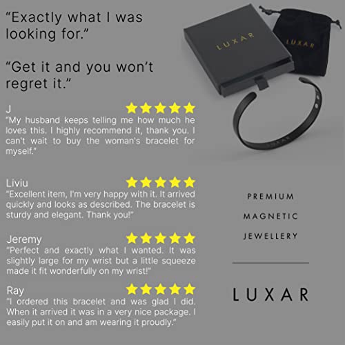 - LUXAR presenta il nostro bracciale magnetico in titanio puro al 100% con un'elegante finitura nera spazzolata - Uno dei metalli più forti, leggeri e resistenti della Terra. Il titanio è inoltre 100% ipoallergenico e completamente privo di nichel e piombo, per prevenire il rischio di reazioni allergiche.