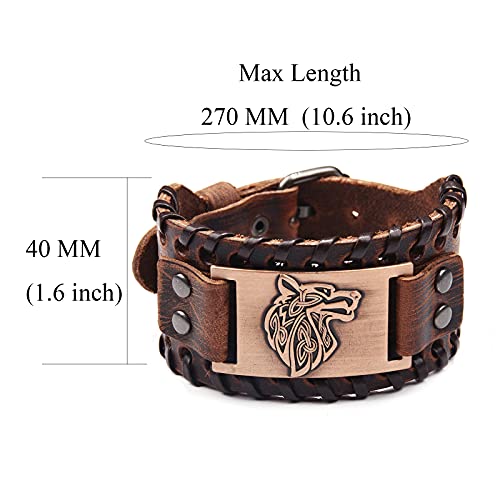 Braccialetto vichingo marrone con lupo Fenrir - Braccialetto vintage nordico talismano - braccialetto gotico per cosplay celtico pagano, 26.5cm, Pelle