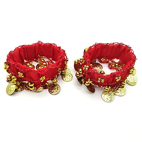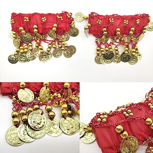 2 PCS Bracciali per La Danza del Ventre, Belly Dance Braccialetti Polsini da Polso Gioielli di Danza del Ventre Accessorio per Costume da Ballerino per Danza del Ventre per Spettacolo, Festa (Rosso)