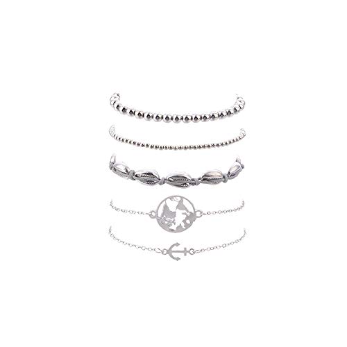 Set di 5 bracciali alla moda con conchiglia e ancora BR148s