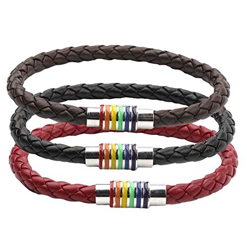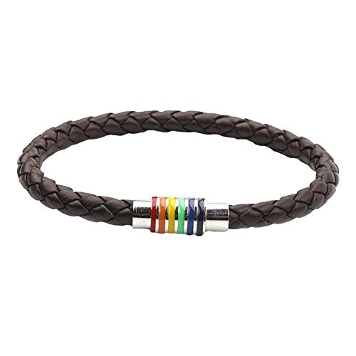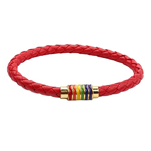 Bracciali, Moda Unisex Intrecciata Corda Di Cuoio Arcobaleno Fibbia Magnetica Gioielli Braccialetto - Rosso Dorato*
