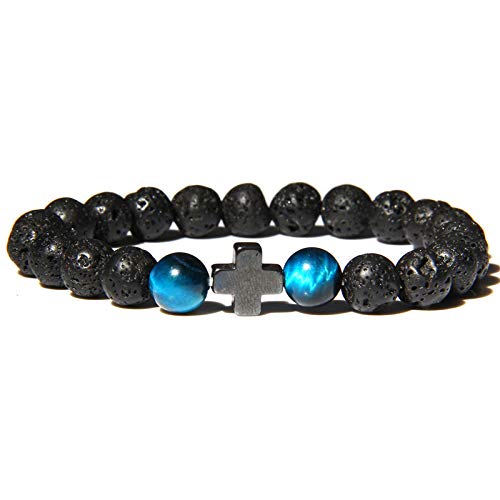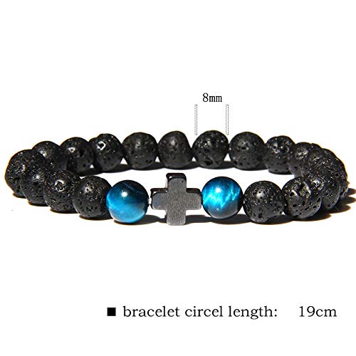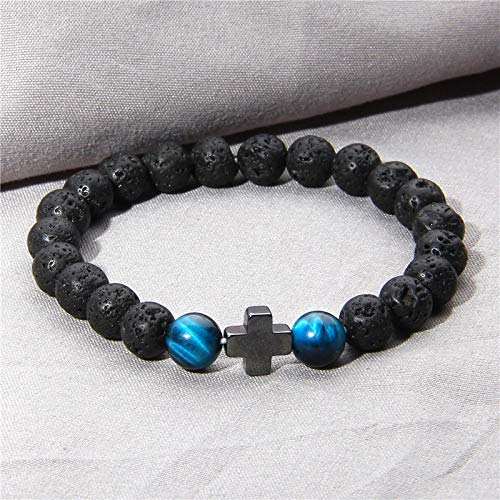 Bracciali Da In Pietre Naturali,Braccialetto Di Perline Di Lava Nera Naturale Fatto A Mano Braccialetti Di Perline Con Occhi Azzurri Braccialetto Di Braccialetti Di Fascino Incrociato Fortunato Per D