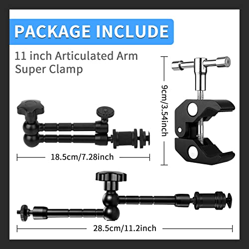 Braccio per Monitor Magico da 11 Pollici Set Braccio Magico Braccio Articolato + Grande Pinza a Granchio Grande Clip per Fotocamera DSLR Rig da 15 mm per Monitorare Luce LED