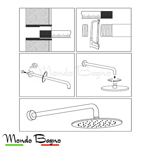 Braccio supporto a muro per soffione tondo in acciaio cromato