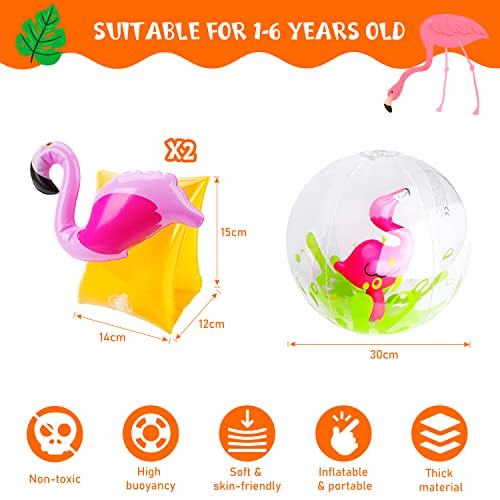 【Ali d'acqua per bambini】 Questo set di palloni da spiaggia estivi include 3 dispositivi di galleggiamento con pallone da spiaggia gonfiabile con motivo fenicottero, è l'ideale per il tuo pallone da spiaggia estivo e il regalo estivo.