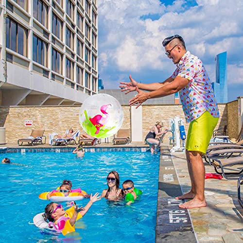 ⭐【Design unico】Puoi vedere i fenicotteri rosa attraverso questi palloni da spiaggia trasparenti, i colori vivaci li rendono un'ottima scelta per tutti i tipi di attività.