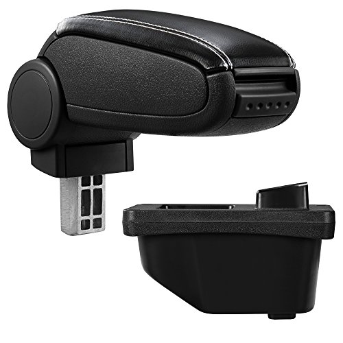 Pro.tec - Bracciolo centrale - Poggiabraccio con vano portaoggetti - imbottito - in similpelle - nero con cucitura bianca
