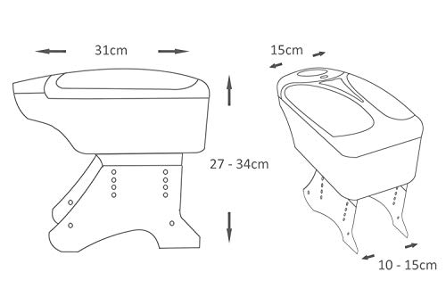 Si prega di tenere a mente che è necessario controllare due volte l'altezza e la larghezza del bracciolo, assicurarsi di avere lo spazio necessario tra i sedili anteriori e anche prendere in considerazione la larghezza del tunnel centrale prima dell'acquisto. La larghezza della console centrale non deve essere superiore a 13 cm e non inferiore a 11 cm.