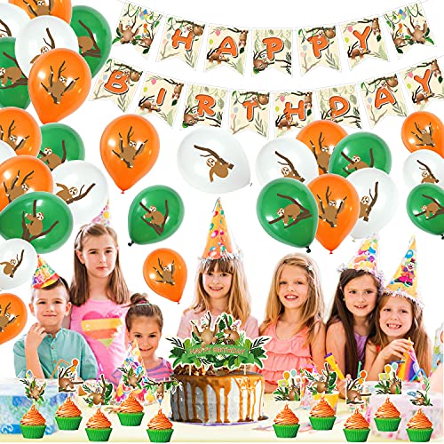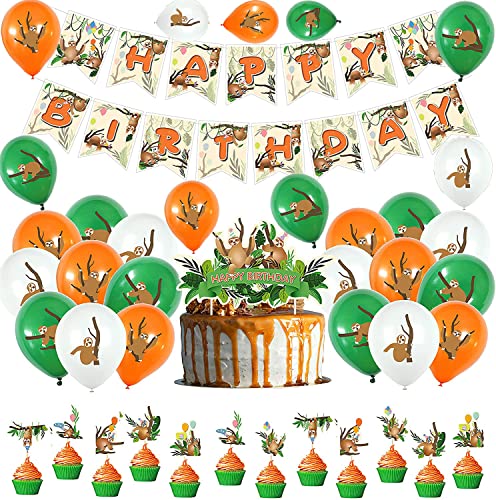 Bradipo Bambino Decorazioni di Compleanno Palloncini Striscioni di Buon Compleanno Torta Decorazione per Bambini Forniture Decor per Feste a Tema Bradipo